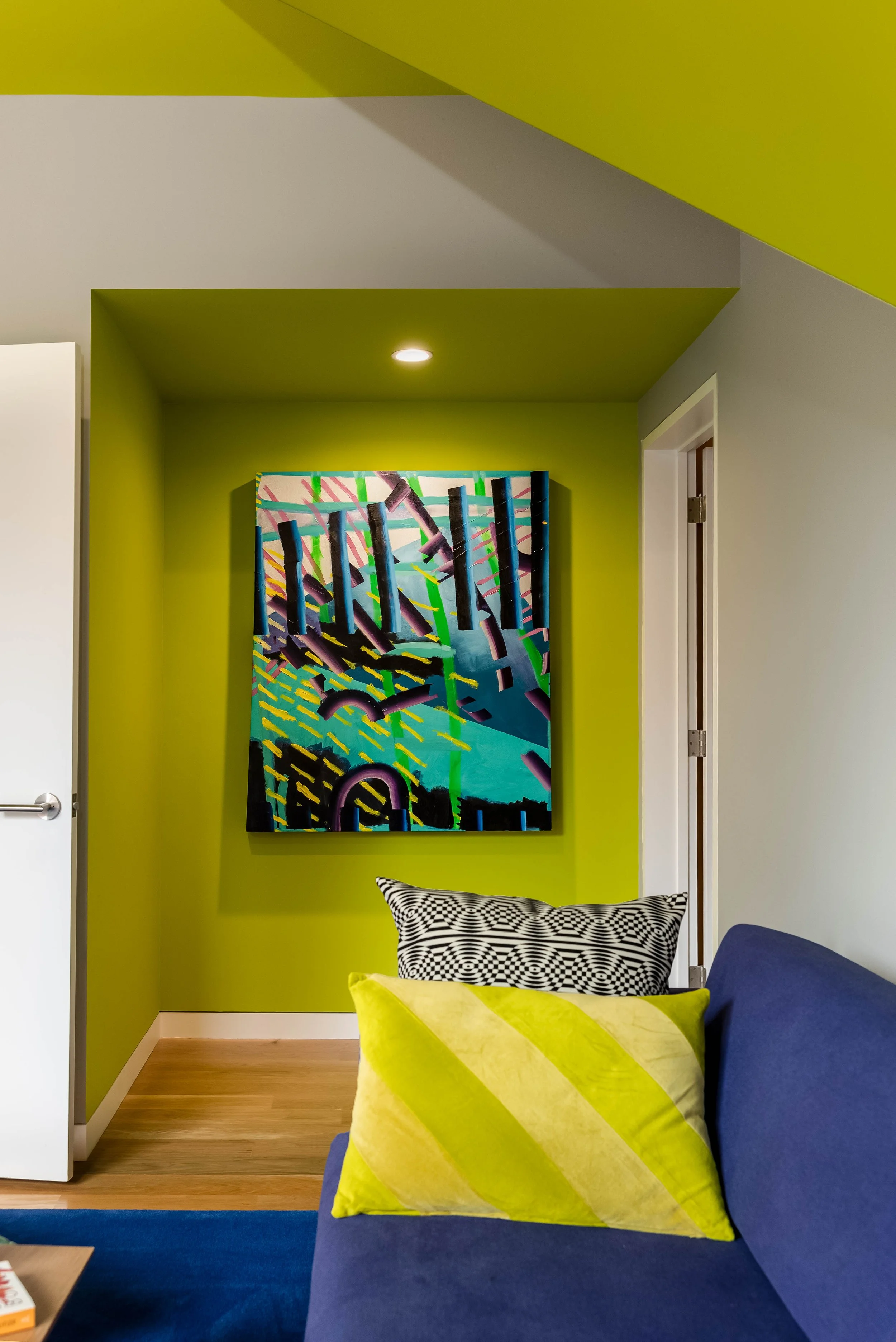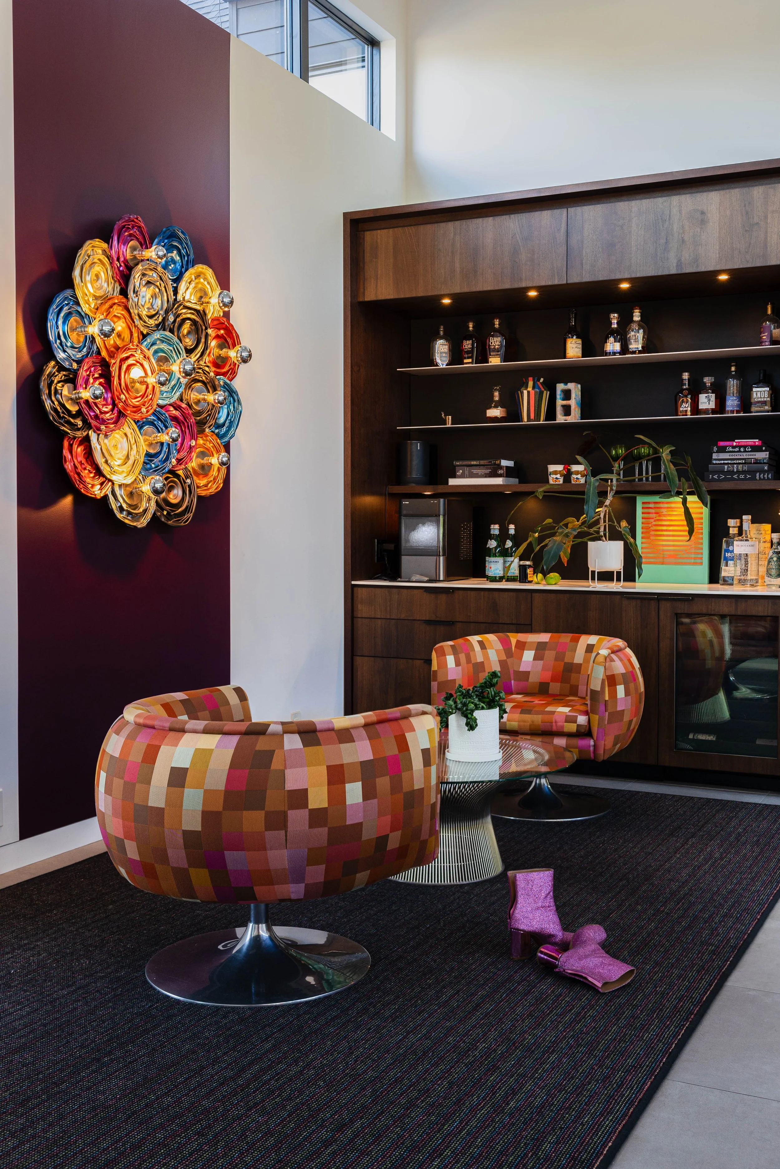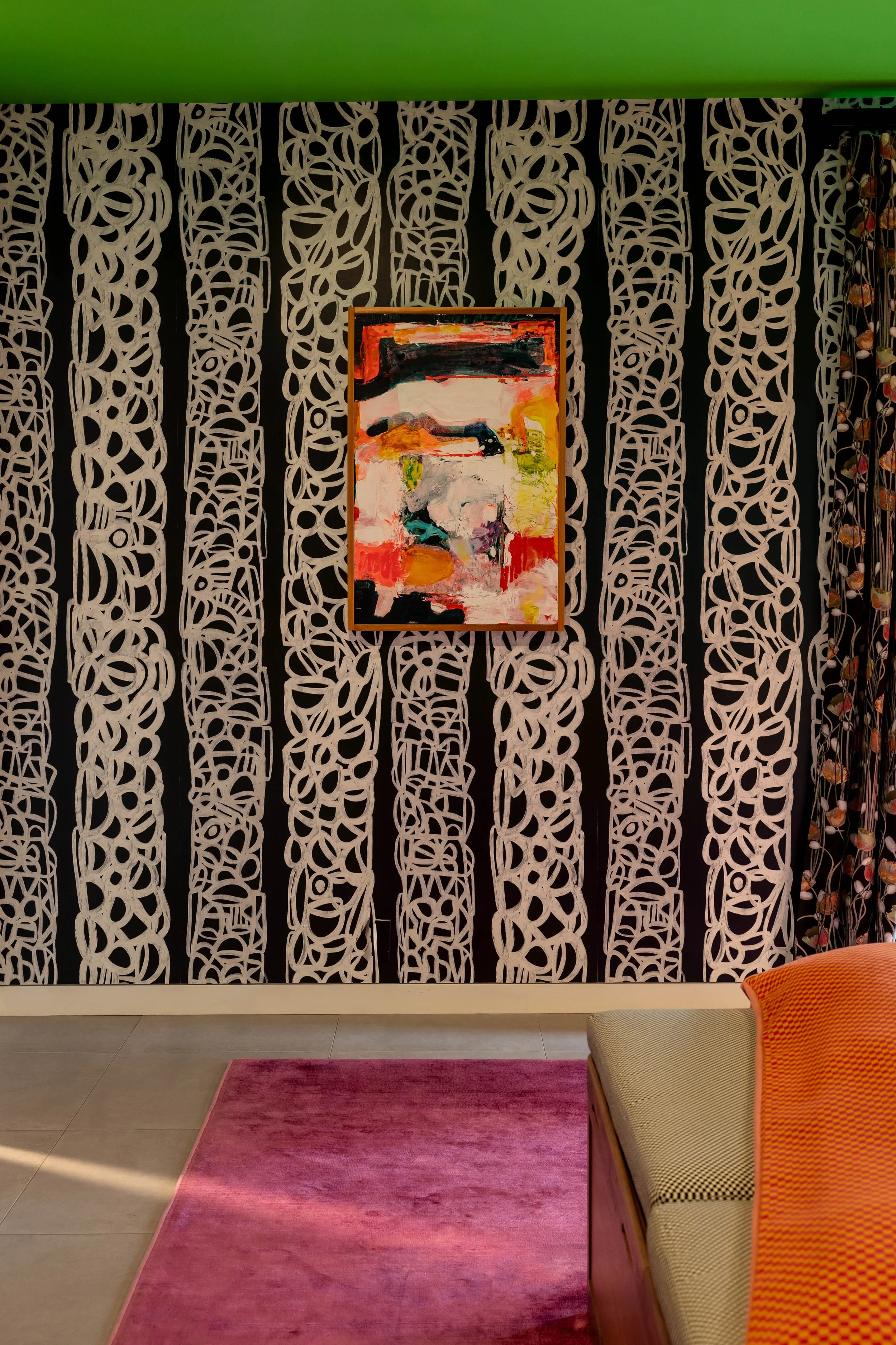 A home so architecturally sound it lands softly and unexpectedly on the street. Like a whisper at first glance, it reveals its brilliance only upon stepping inside—a space that carries a cocofanny of color, transporting you immediately into a world of intrigue.